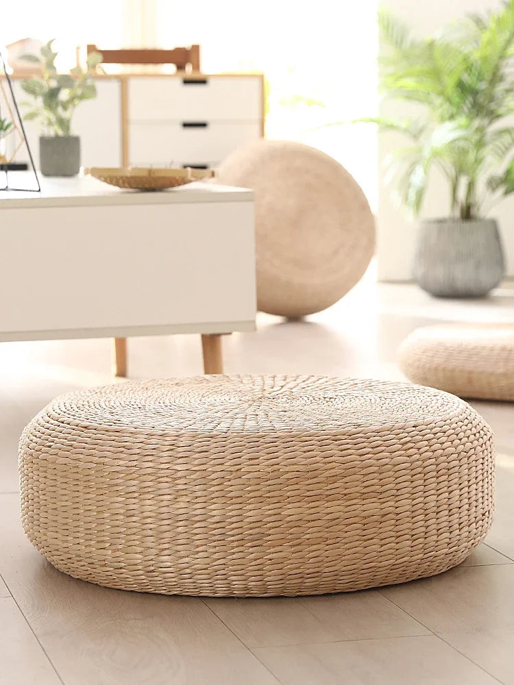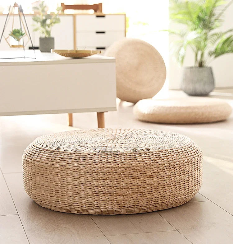 Disfruta de la autenticidad y el confort con este puf redondo de paja natural, ideal como cojín de meditación, asiento de suelo o tatami decorativo. Disponible en varios tamaños para adaptarse a todas tus necesidades.