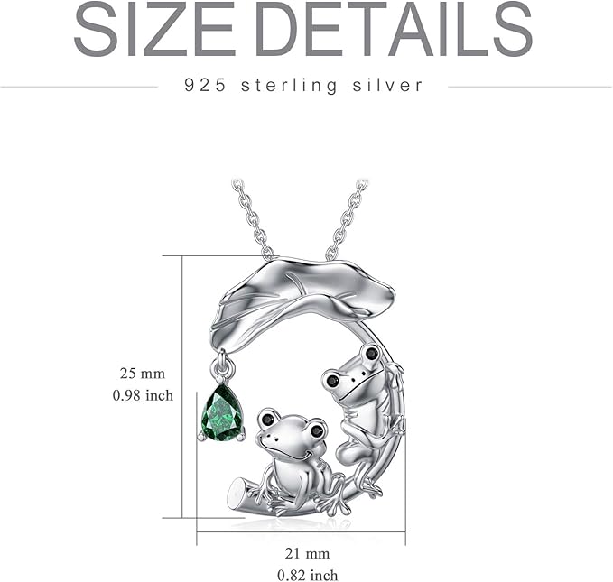 Este collar de hoja de loto en plata 925 con una rana de dibujos animados representa la pureza, la alegría interior y la conexión con la naturaleza. Una joya única, tierna y llena de sentido.