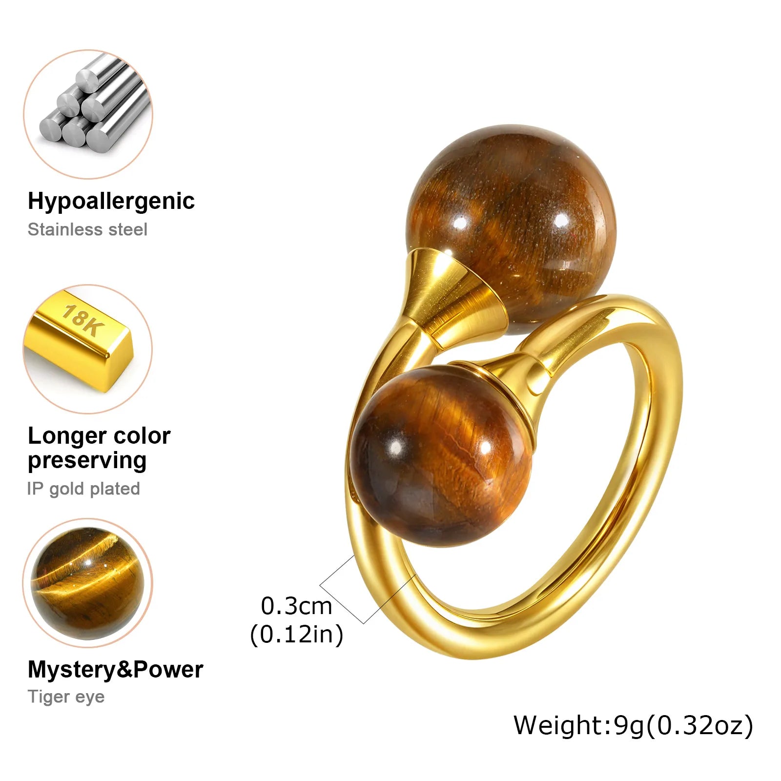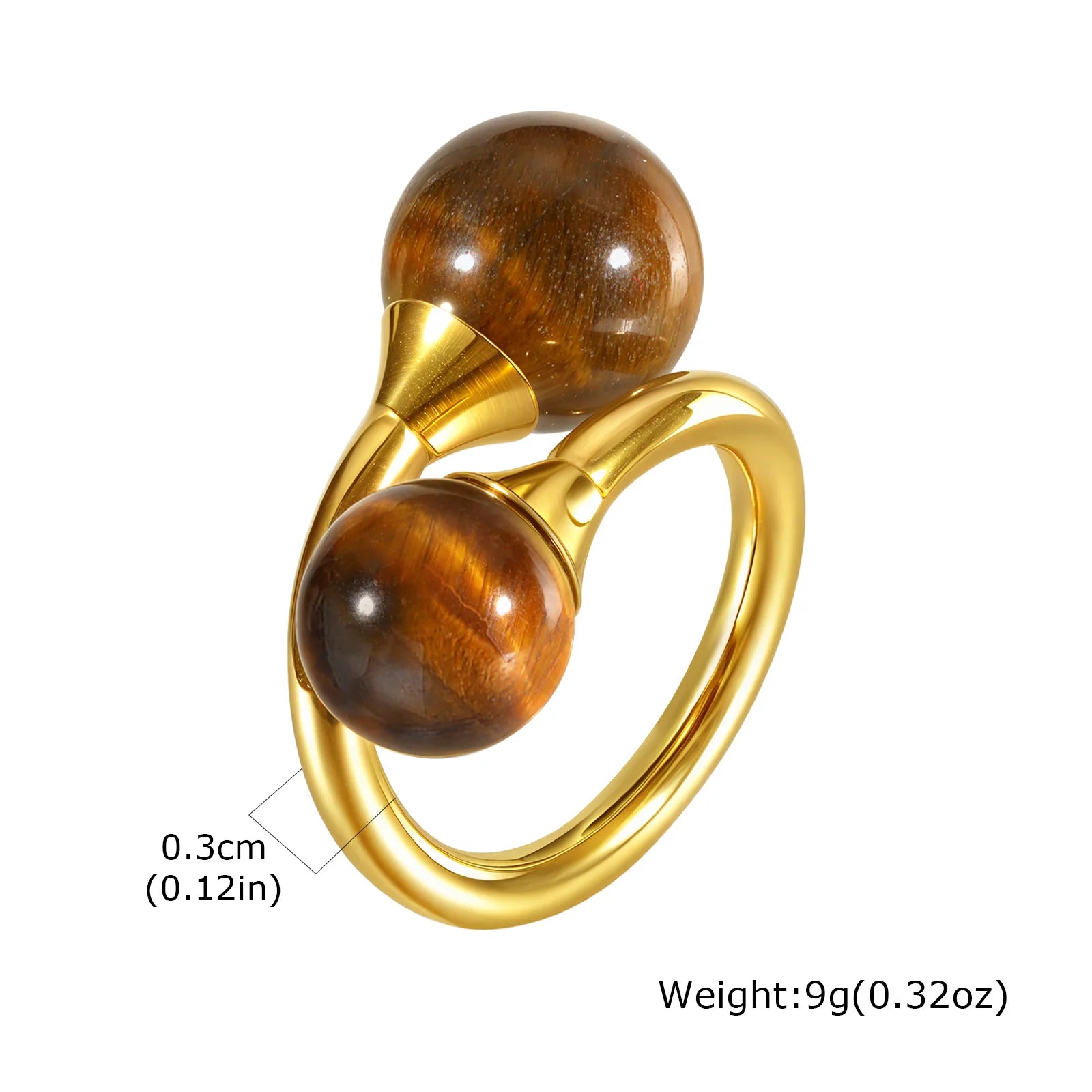 Busca la claridad y el valor. Este Anillo Vintage con Piedras Naturales engarza dos ojos de tigre, conocidos por ser un poderoso talismán que promueve la confianza en uno mismo y la buena suerte. Fabricado en Acero Inoxidable de alta calidad y recubierto con un elegante Baño de Oro, es una joya tendencia que no solo decora, sino que también protege y empodera. Ideal para mujeres que desean llevar un símbolo de fuerza interior con un toque de moda chic.