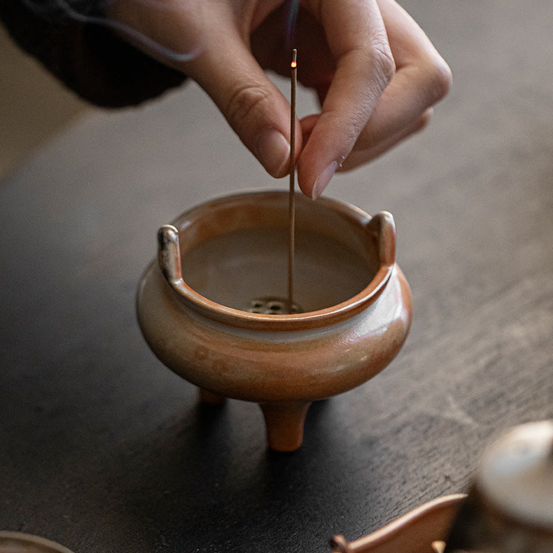 Disfruta de la calma con este quemador de incienso artesanal de cerámica, con diseño retro en trípode. Ideal para aromaterapia y meditación, aporta armonía, belleza y energía espiritual a tu hogar.