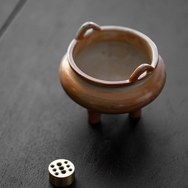 Descubre la calma con este quemador de incienso de cerámica hecho a mano, con diseño retro en trípode. Ideal para aromaterapia en el hogar, aporta armonía y energía espiritual a tu espacio.